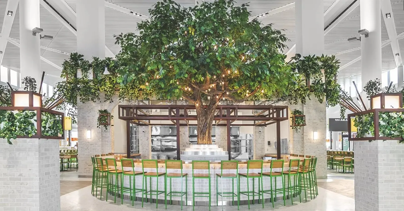 More than just decoration, the trees and elevated greenery signal a new kind of airport dining—one that values relaxation, style, and a strong sense of place. The result is an immersive destination where design and nature come together to welcome guests with beauty, comfort, and surprise.