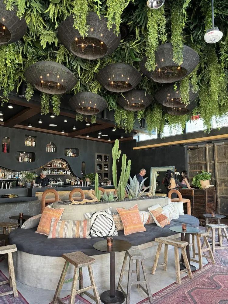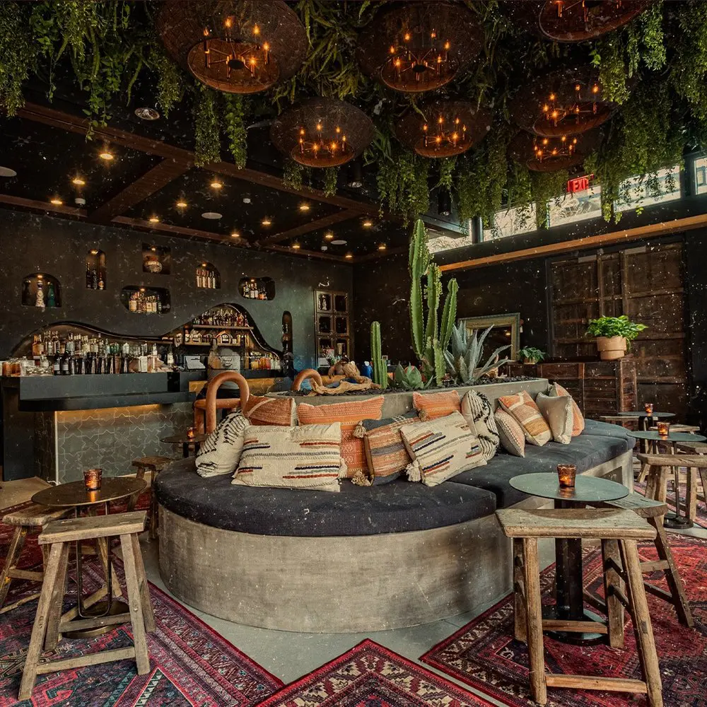 To help establish the lush, moody ambiance at Todo Bien in Las Vegas, Plantworks designed and installed a dramatic green ceiling that immerses guests in natural beauty from the moment they walk in. Hanging greenery spills from the ceiling around a sculptural array of pendant lights, while additional plantings throughout the lounge soften architectural lines and enhance the intimate, bohemian aesthetic of this vibrant, cactus-forward cocktail bar.